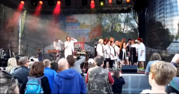 písně J. Buriana a 1 gospel za klavírního doprovodu na ulici. Pro špatné počasí byla akce přeložena.